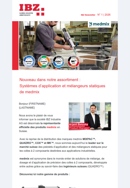Des informations utiles dans les domaines du collage, de l’abrasion, de la protection au travail et de l'hygiène ainsi que des nouveautés, des actions et à chaque fois quatre conseils directement issu de la pratique - bref, concis et allant droit au but.